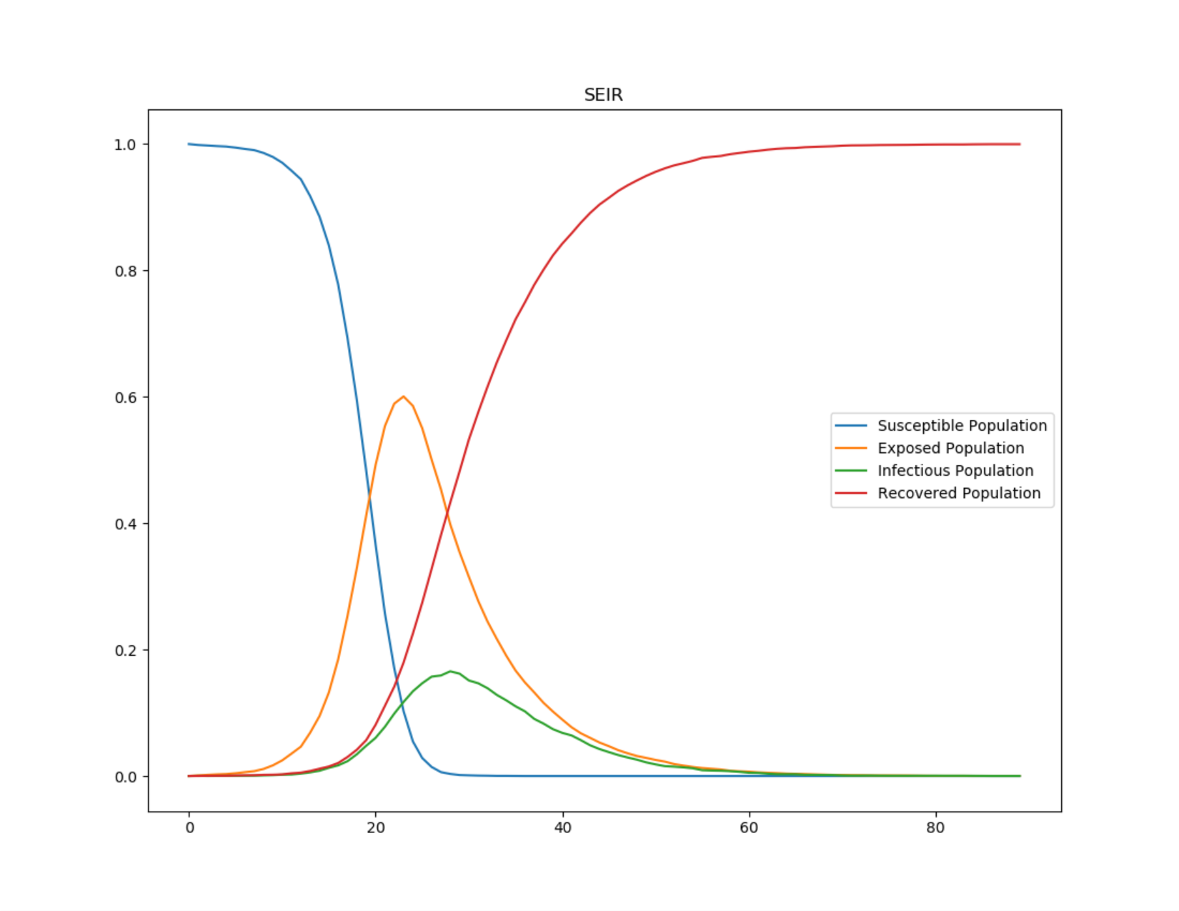 Figure 3: SEIR epidemic course for 2-day incubation period#